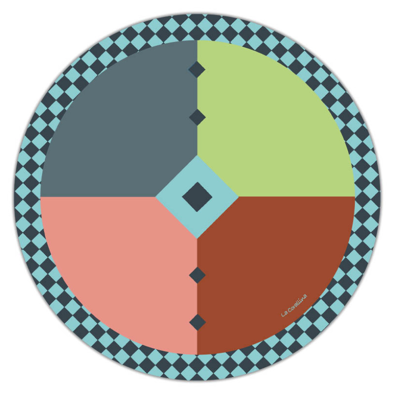 Round Bottle Coaster in wood fiber and cork drawing Skiathos pattern 03