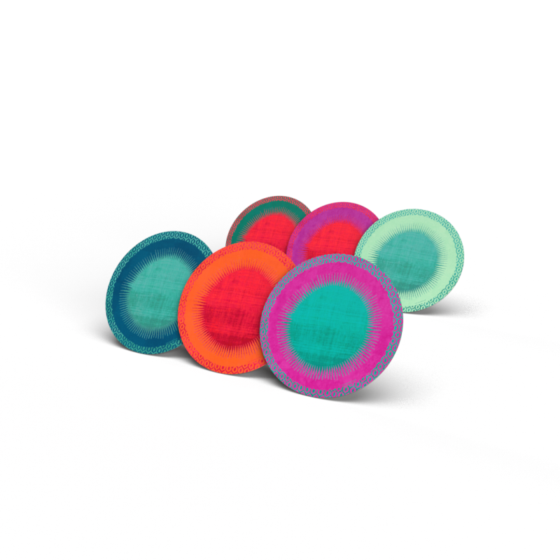 Stromboli, the Aeolian Island with its active volcano, amazes us with its colors forged by volcanic lava. A triumph of warm, bright tones that compete with the celestial blue of the sea, limpid and crystalline. This collection of placemats is a tribute to this all-Italian beauty of extraordinary uniqueness. A 6-seater mise en place for the whole family and friends, in a combination of breathtaking colors and a strong and decisive line.