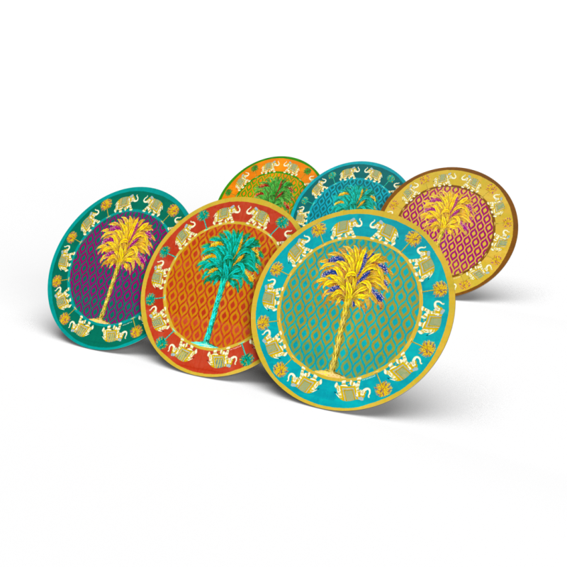 Palms and Elephants that meet in a collection of lively placemats with enveloping colors. A new stage of the journey that La Corallina makes around the world to bring oriental flavors, colors and textures to your home directly on your table. The Sumba Elefanti Collection consists of 6 Plates.