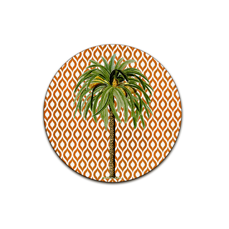 Round Placemat wood fiber and cork drawing Ibiza Palma pattern 2