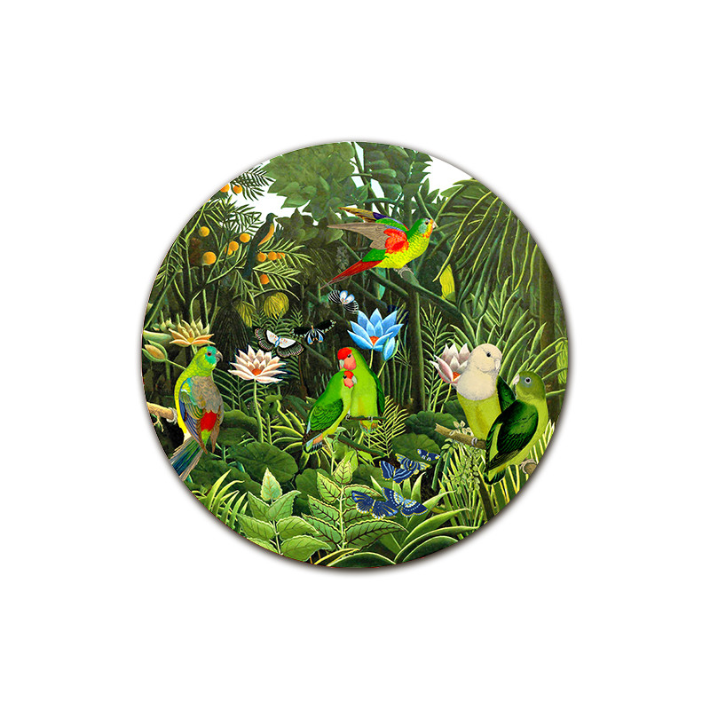 Round Placemat in wood fiber and cork drawing Guinea Pappagalli Pattern 2