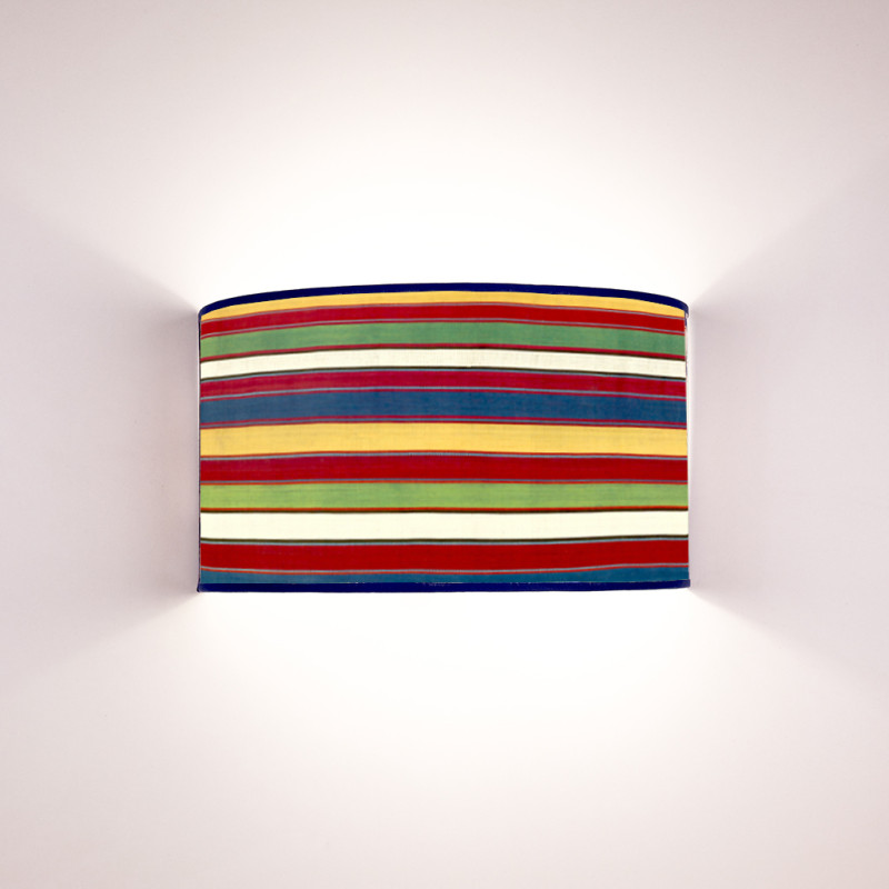 Ventola in tessuto stampato modello Righe Colorate Antiche disponibile nel diametro da cm. 25 o cm 35. Altezza cm 20 con attacco luce standard E27 (su richiesta è possibile ottenere eventuale riduzione ad attacco E14).