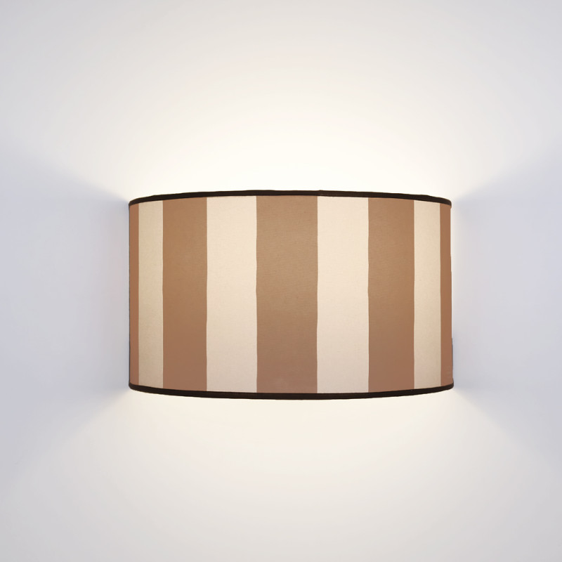 Ventola in tessuto stampato modello Geo Righe Larghe color Tortora e Crema. Altezza cm 20 con attacco luce standard E27 (su richiesta è possibile ottenere eventuale riduzione ad attacco E14).