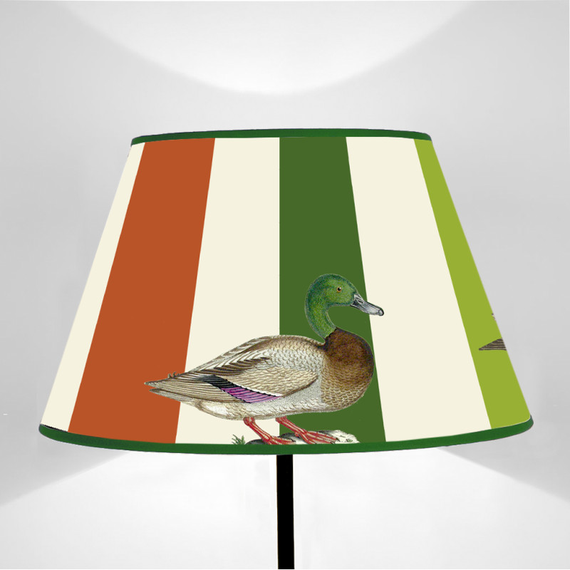 Paralume tronco di cono stampato su tela disegno Anatre su righe Multicolori