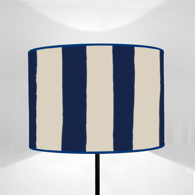 Paralume cilindro stampato su tela disegno Righe Blu Navy