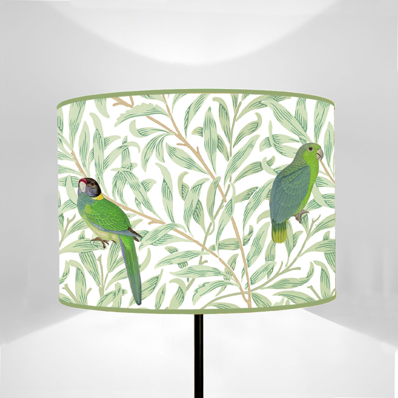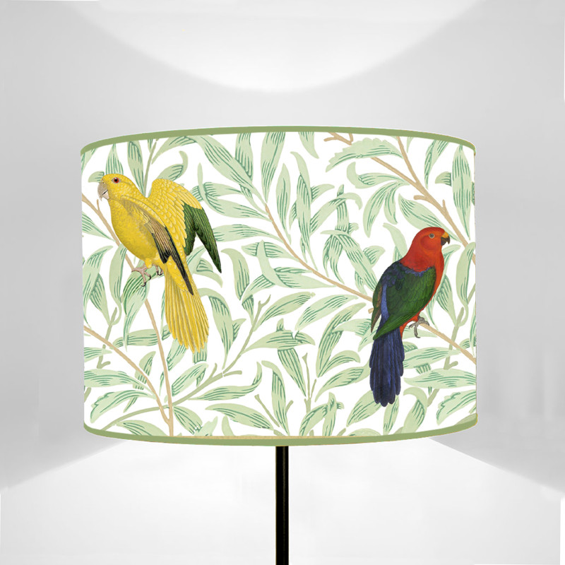 Paralume cilindro stampato su tela disegno Fauna Foglie e Pappagalli