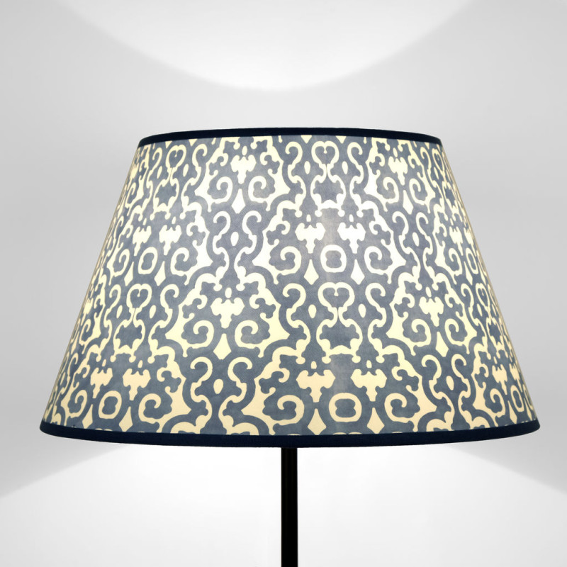 Paralume tronco di cono stampato su tela disegno arabesco modello avio