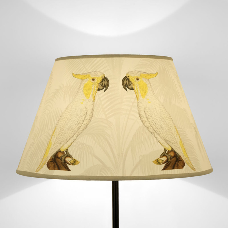 Paralume tronco di cono stampato su tela disegno fauna modello cacatua fondo chiaro