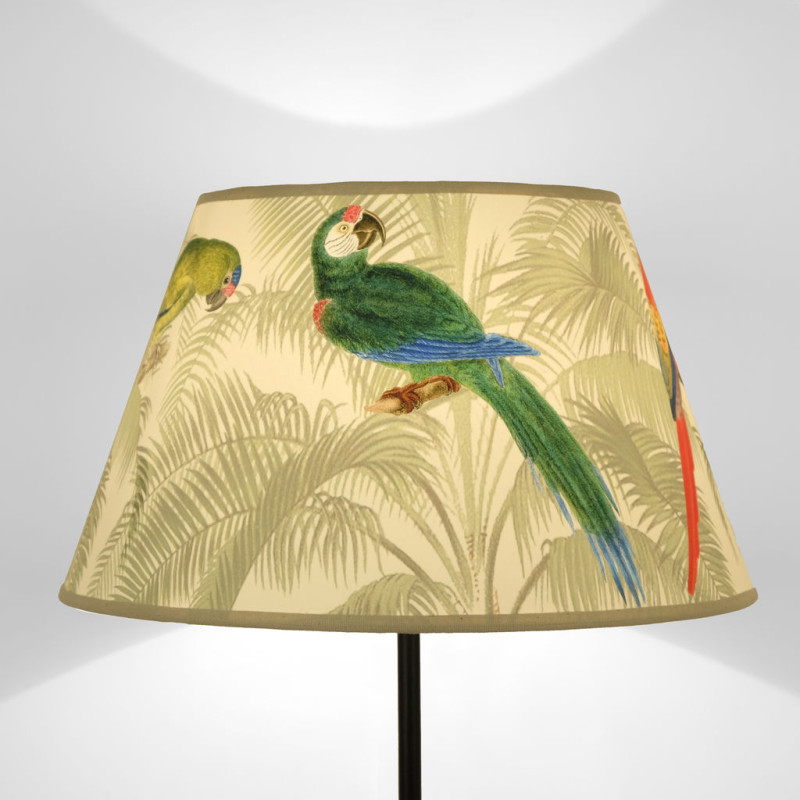 Paralume tronco di cono stampato su tela disegno fauna modello pappagalli colorati