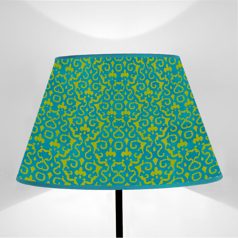 Paralume tronco di cono stampato su tela disegno Arabesco Peacock e Senape