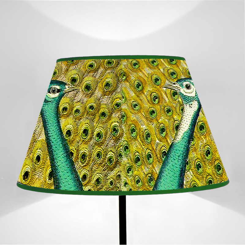 Paralume tronco di cono stampato su tela disegno Fauna Pavoni