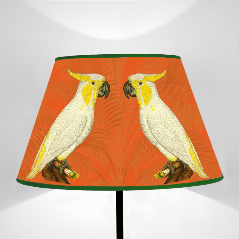 Paralume tronco di cono stampato su tela disegno Fauna Cacatua fondo Arancione