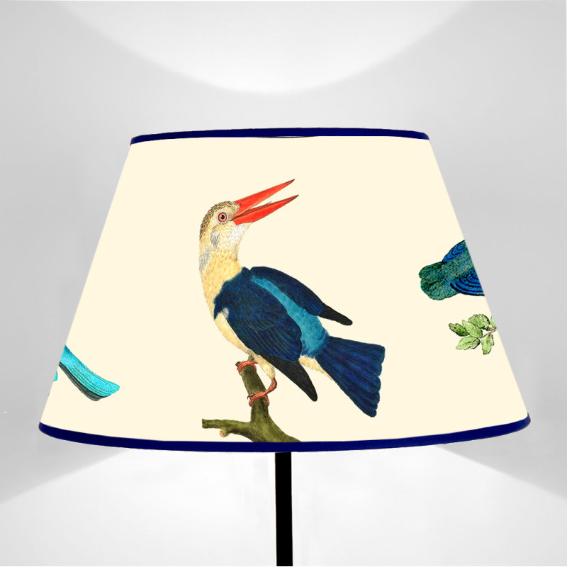 Paralume tronco di cono stampato su tela disegno Fauna Martin Pescatore fondo Crema