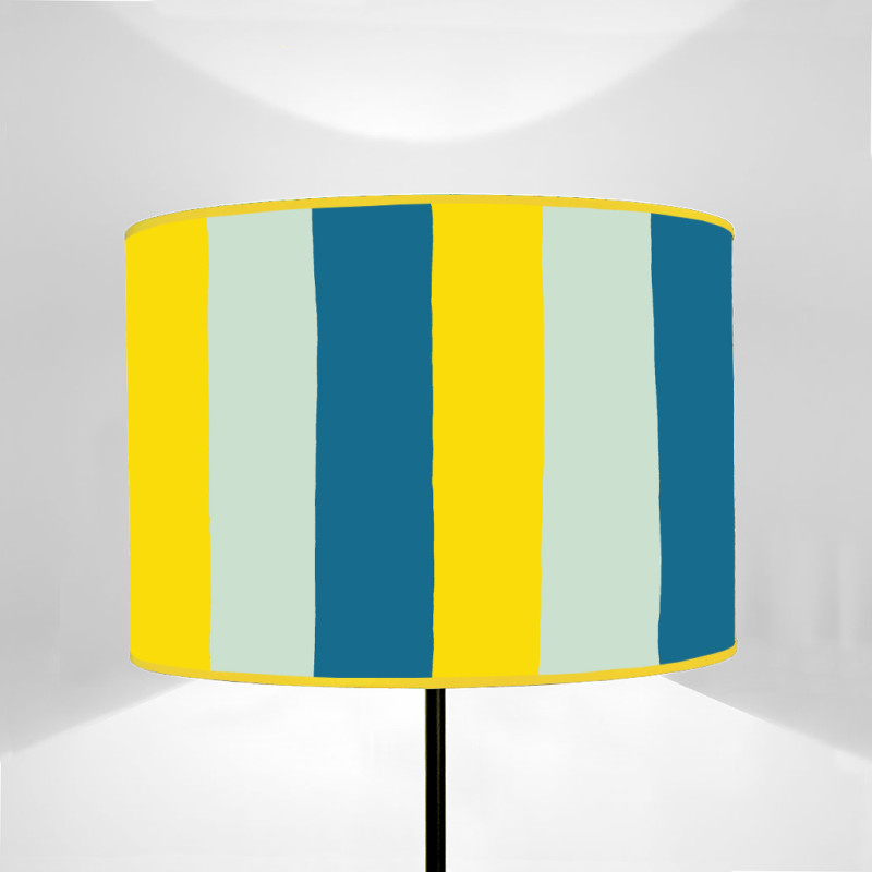 Paralume forma cilindrica, stampato su tela, con disegno a Righe Colorate Turquoise and green, antwarp blue, apricot jellow