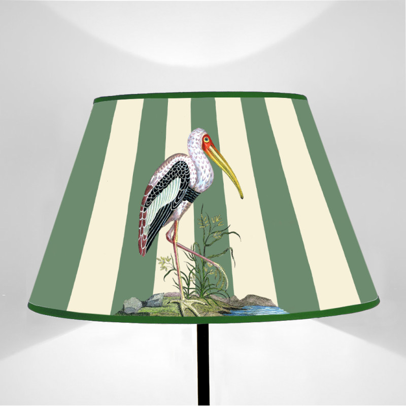 Paralume tronco di cono righe verde salvia e panna con uccelli esotici