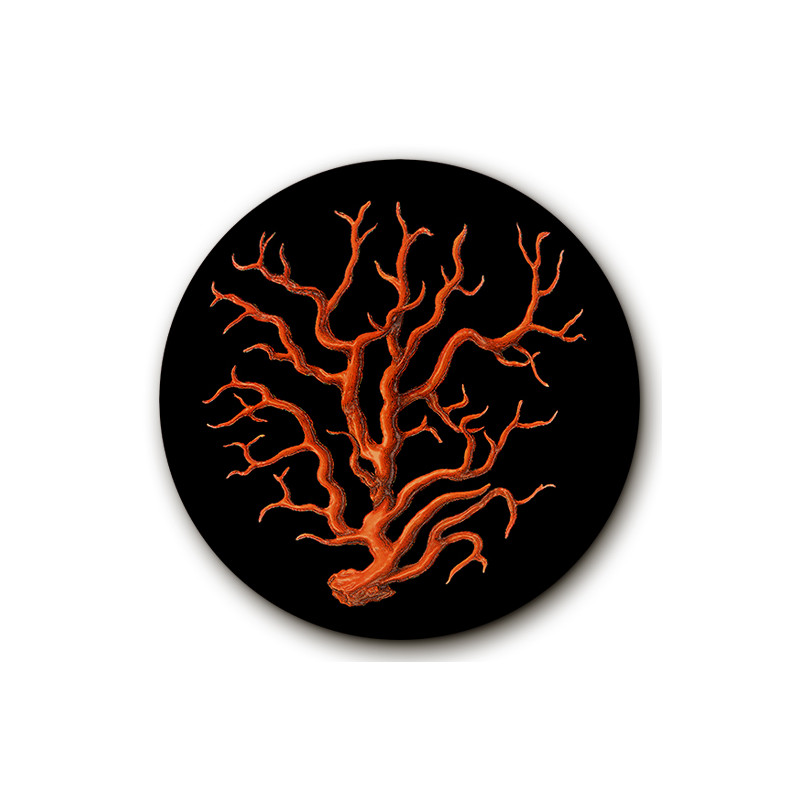 Round SOTTOBOTTIGLIA fibra di legno e sughero disegno coralli modello corallo rosso sfondo nero