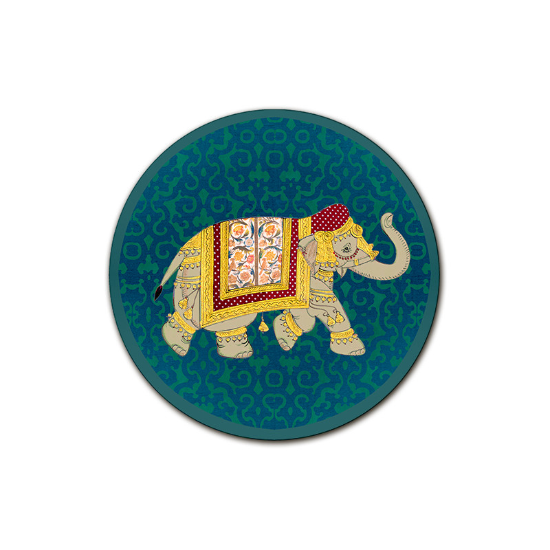 Categories: Shop, Sottopiatto rotondo, Elefanti, Arabeschi